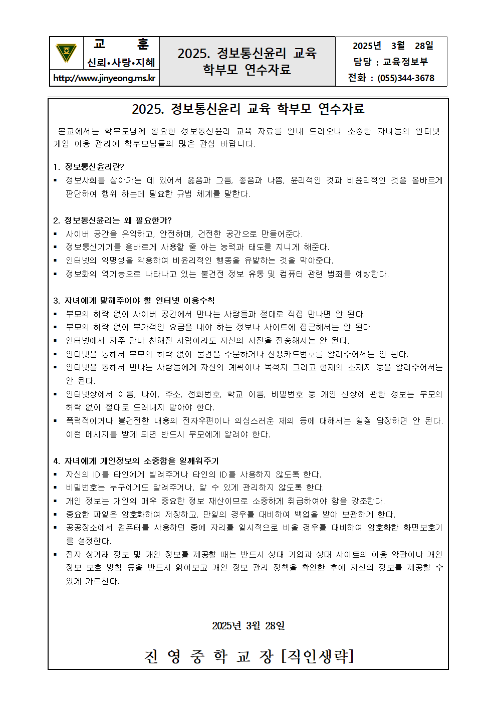 2025년 상반기 정보통신윤리 부모 교육